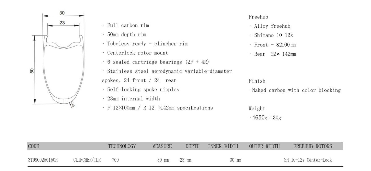 リムは今回、50mmハイトのみの展開になります。他に60mmの展開もありますが、より軽い40-45mmなら準備したいのですが、TTなどに向くリムは遠慮しました。内寸は23mmで28cより太いタイヤにベストマッチします。最近の一番流行りのサイズになります。